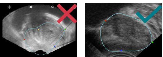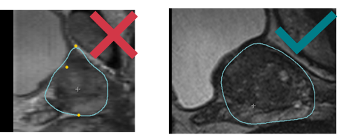 - Make sure the blue contour fits correctly with the prostate shape on MRI & US: