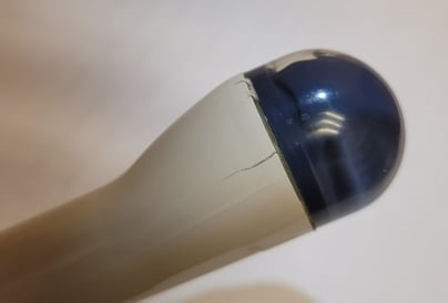 - Craquelure sur une sonde TR probe, dissociant le dôme du corps de la sonde et entrainant l’apparition d’une bulle
