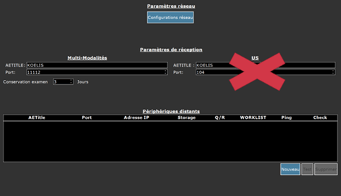 Je configure mon système KOELIS avec le PACS, les deux entités ne communiquent pas.