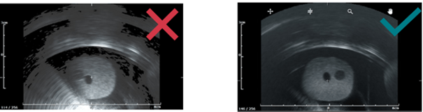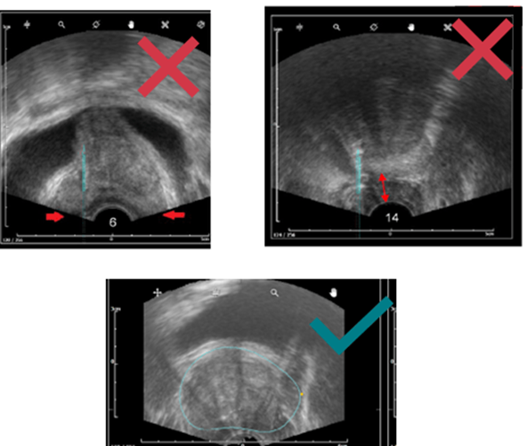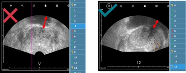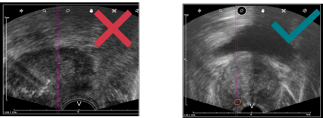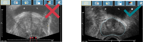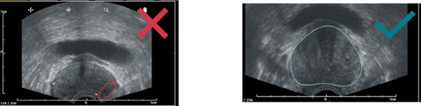 - La prostate doit être clairement visible, aucune ligne noire continue ne doit apparaitre. Si vous suspectez une image de mauvaise qualité, se rapporter à cet article.